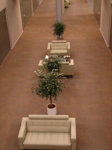 Biroju ēka sākta celt 2006. gadā un pabeigta 2008.gadā. Ēkas vidū ir stiklots jumts, kas veido ātriju ar kopēju telpu visiem birojiem. Kā galvenais biroju ēkas halles interjera dizaina akcents ir centrālā lustra, kas sastāv no daudz mazām gaismas caurulītēm. Vakaros tā atgādina vizuļojošu ūdenskritumu, kas līst caur otrā stāva griestiem uz leju. Interjerā veiksmīgi izmantotas grīdas paklājflīžu priekšrocības. To nejaušais salikums veido interesantu dizainu. Vairāk informācijas par paklājflīzēm: www.anitra.lv . Interjera dizaina projekts birojam tapis ciešā sadarbībā ar SIA „Arhstadija’. Interjera projekta autores dizaineres Elita Pole un Ilze Tola. |